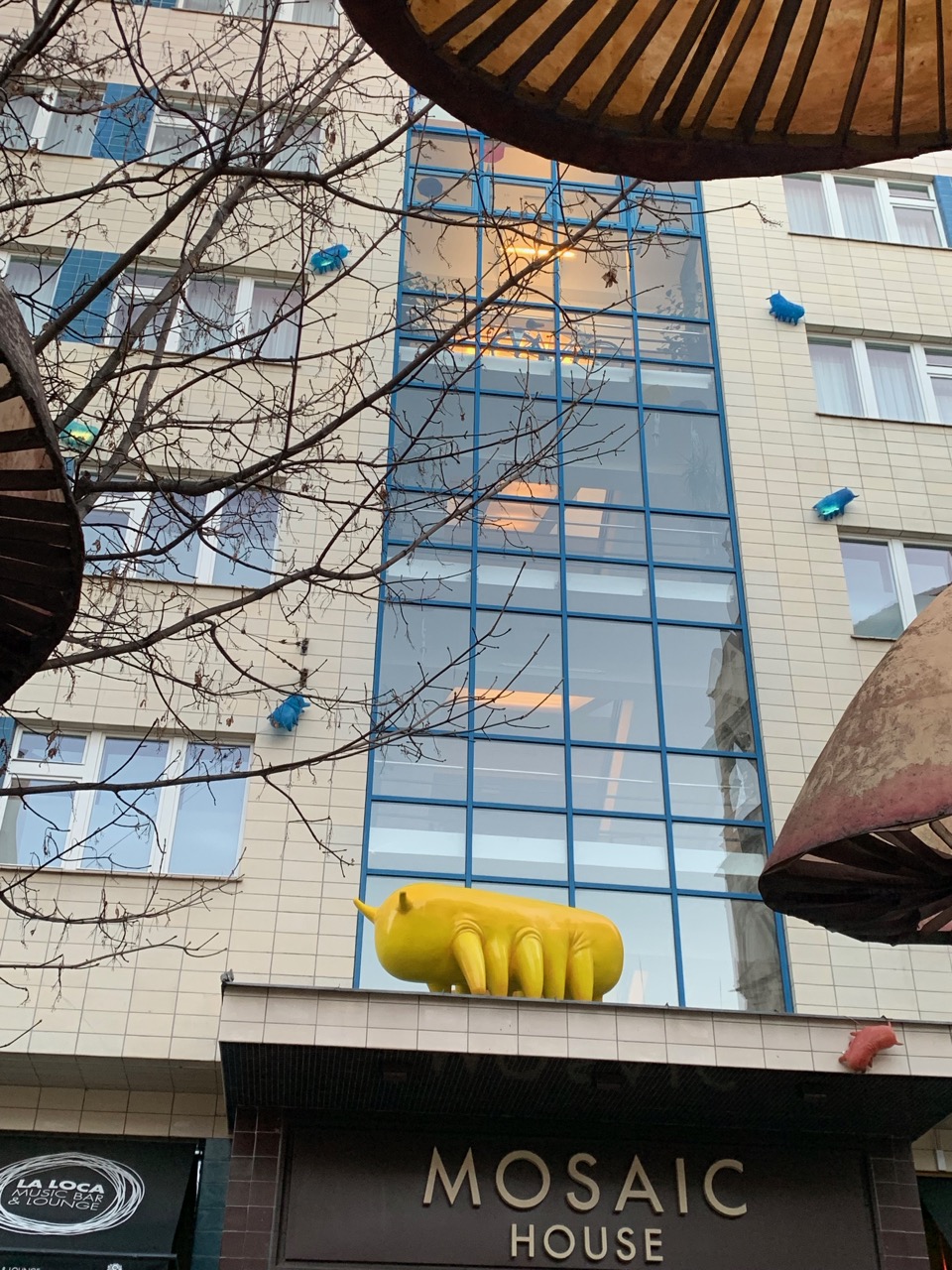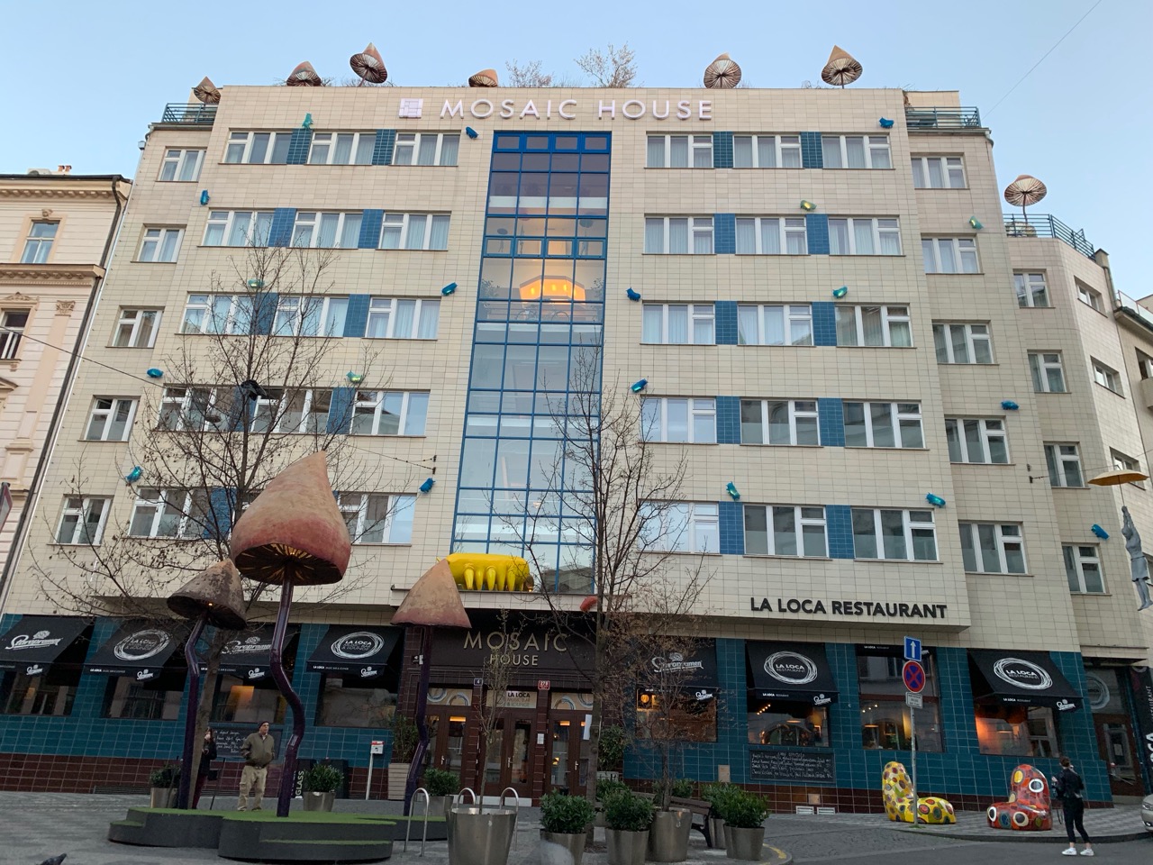 It was a very very very very long day of walking and our feet were very sore. I’m sure the Dancing Houses would have been more impressive if we had taken an Uber to see them instead of walking what was at this point over 11 miles throughout the day. But we soldiered on, walking to find someplace to eat. As we headed towards our Yelp chose destination we happened past Mosaic House, who’s external artwork intrigued us and we decided to have dinner there instead.