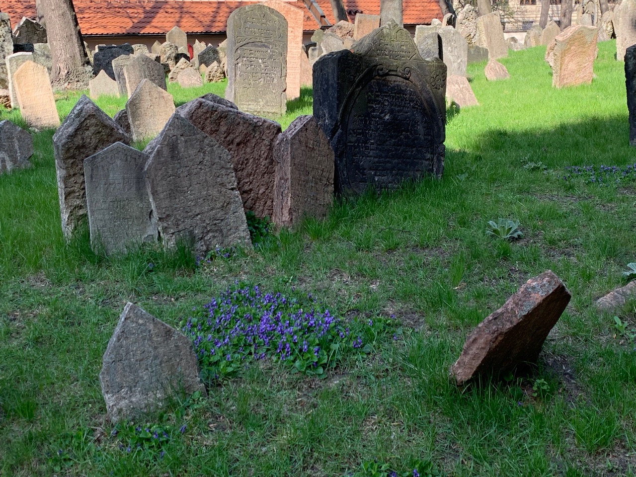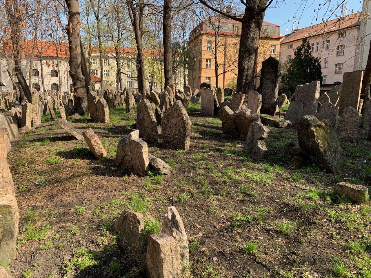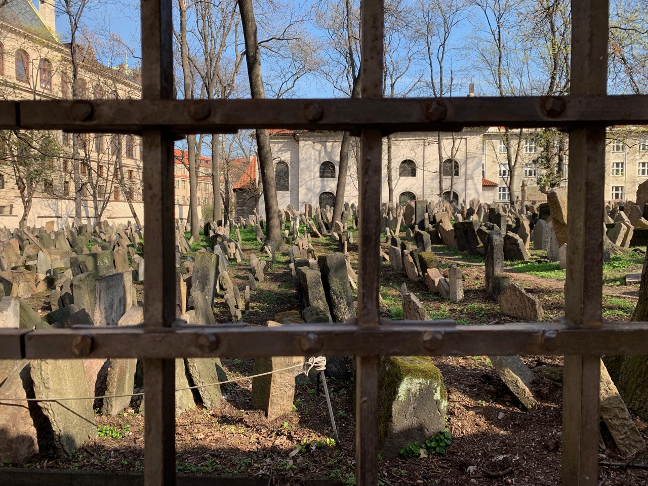 We rose early to take in a few sites before meeting my Slovakian ex-brother-in-law Sano around noon. A few short steps from our airbnb was Josefov (the Jewish Quarter of Prague) where we did a self-guided tour of the Jewish Museum of Prague (which consists of several historic synagogues which have been transformed into museums focused on different aspects of Jewish history in Prague and of the Jewish faith. We first visited the Pinkas Synagogue, which dates from 1535 but was turned into a memorial int he mid-late 1950s to 80,000 regional Jewish people murdered by the Nazis, as well as an exhibit of children’s drawings from the Terezín Ghetto. Both exhibits were profoundly sobering.