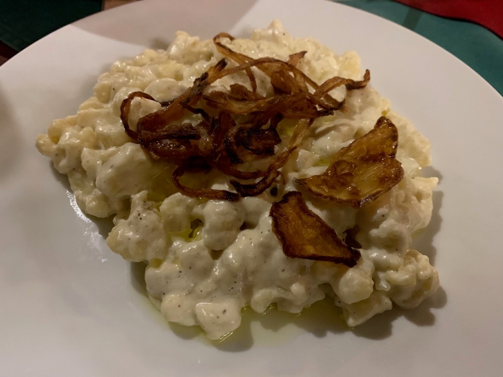 Once we had Sano with us we connected with Clara and West and made our way back across the Charles bridge to explore the Prague Castle. But first we stopped for a lunch deep in the catacombs of some restaurant dungeon we happened upon. One reason we ate there was because they had bryndzové halušky – The national dish of Slovakia! I remember Sano’s mother making this for me when I visited them in the early 1990s. We were also able to get some vegetable risotto, a vegetarian dish (a concept that was impossible to conceive of in Czechloslovakia back in the early 1990s). Sano and West being vegetarians we were glad to find these items on the menu.