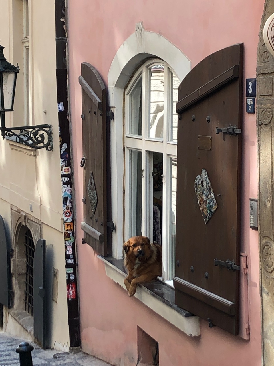 We stopped at a small cafe next to the Franz Kafka Museum where Clara and West went to spend an hour and Tawny and I caught up with Sano. The cafe along the Vltava river had the most spectacular view…from the men’s room…