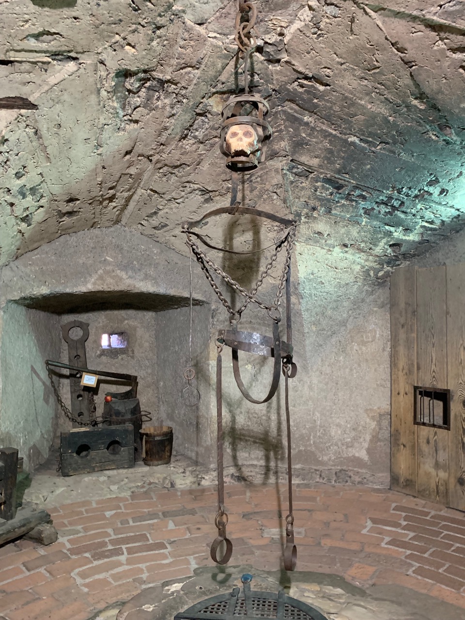 Our wanderings continued to the Golden Lane where castle workers once lived. At one time Franz Kafka even lived in one of these diminutive apartments. At the end of the lane there was a dungeon where castle prisoners were once kept (and confessions coerced).