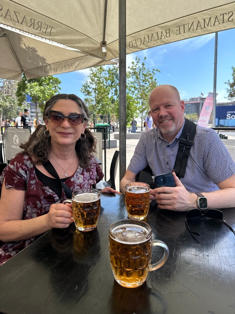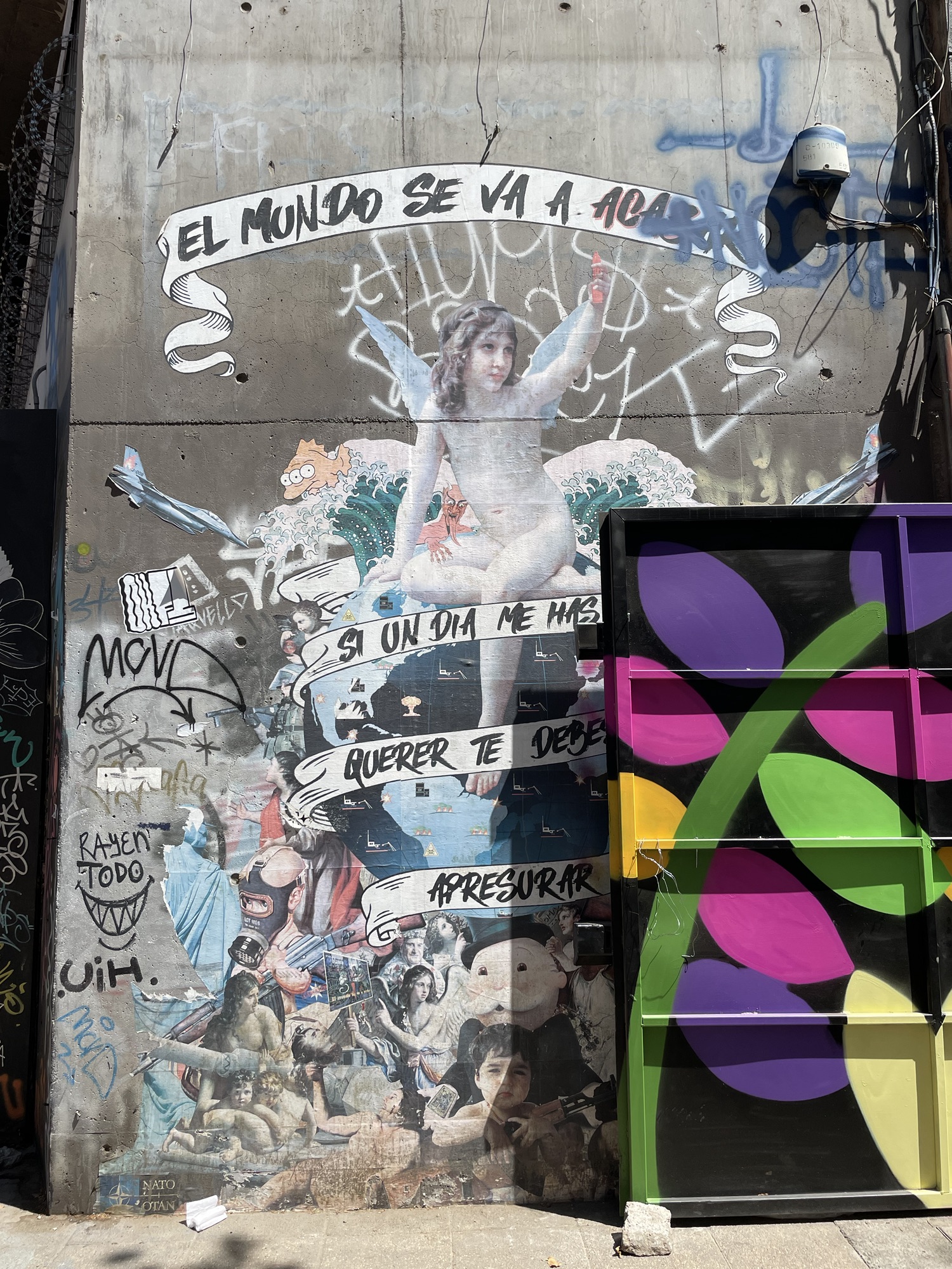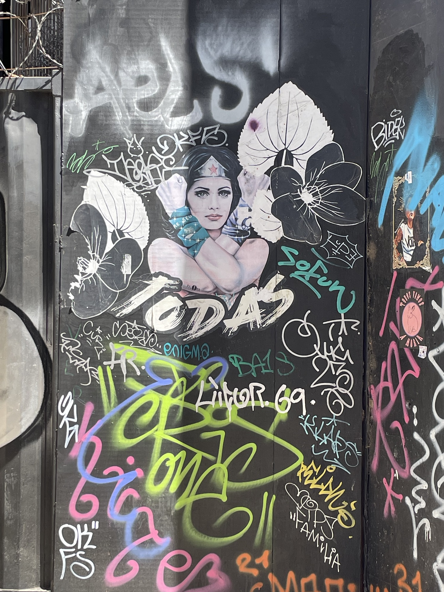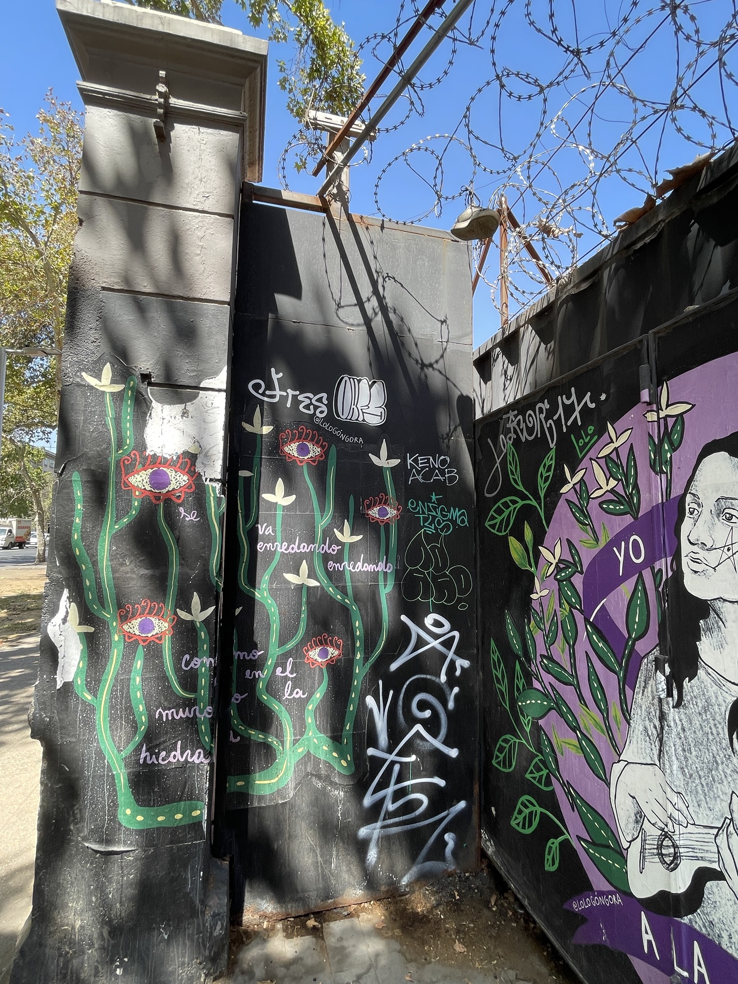 As we rested in the shade and cooled ourselves with a cold cerveza Cristal, we did a quick Google search on fire and Museo Violetta Parra and found out the poster was from March of 2020, not 2024, when in February of 2020 protesters set it (and other buildings) afire during the Plaza Italia riots.