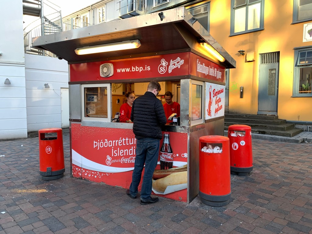 After our engrossing visit to the Phallological Museum, we couldn’t resist the irony of indulging in one of Iceland’s most iconic—and perhaps surprisingly humble—culinary delights: the famous Icelandic hot dog. Known locally as “pylsur,” this beloved treat features a mix of lamb, beef, and pork, topped with crispy onions, raw onions, ketchup, sweet mustard, and a remoulade sauce. Nearby was a well placed Bæjarins Beztu Pylsur the local chain of hot dog stands. It felt fitting to follow up our quirky museum tour with a bite of something uniquely Icelandic, bridging the gap between the curious and the delicious.