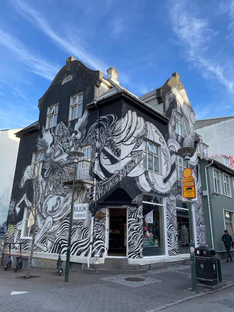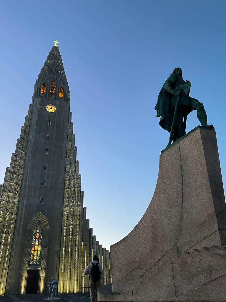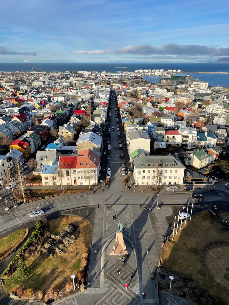 Energized, we made our way to Hallgrímskirkja, the city’s iconic church. Ascending its bell tower, we were greeted with panoramic views of Reykjavík’s colorful rooftops and the surrounding mountains—a truly breathtaking sight.