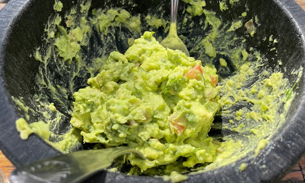 The meal was elevated Mexican: Queso Fundido, Sidecar Margaritas, Table-side Guacamole, Elotes, and the bubbling cauldron of flank steak, chicken breast, tiger prawns, stuffed chile relleno, queso, green onion and bbq enchilada sauce, served in a searing hot Molcajete!