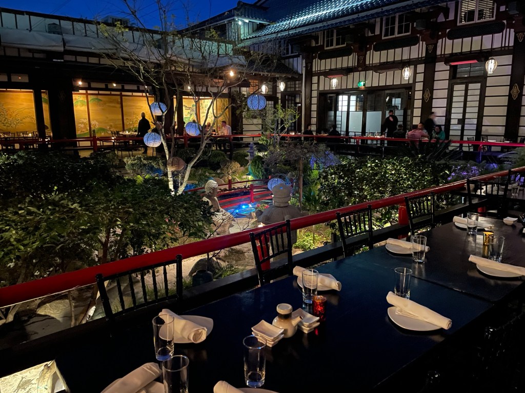 With its pagoda-style architecture, koi ponds, and sweeping views of Los Angeles, it’s a dining experience straight out of a Hollywood blockbuster. The atmosphere made me imagine the sword-wielding action of Uma Thurman in Kill Bill, and I hoped I’d get a katana to cut my sushi with.