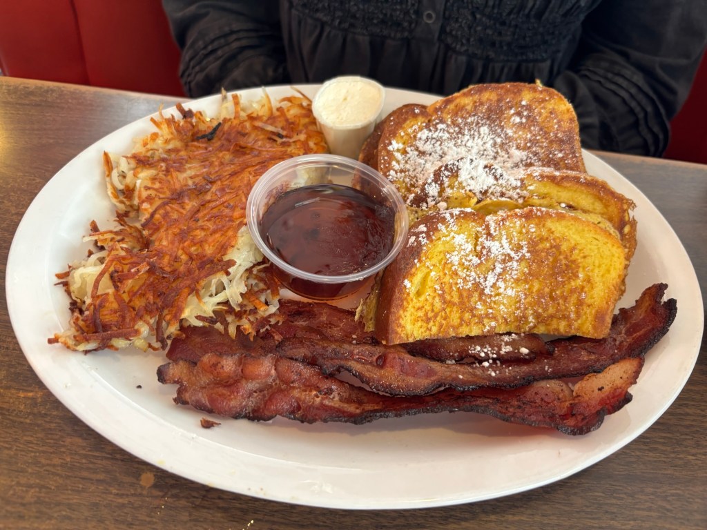 Pann’s serves up classic diner fare with hearty portions and a touch of Southern influence. Signature dishes include their famous fried chicken and waffles (offered as wings, breast and wing, thigh and leg, or tenders), crispy fried pork chops, savory country-fried steak, and golden cornmeal-fried catfish gems—all accompanied by two classic Southern sides and a fluffy buttermilk biscuit. Best of all, breakfast is served all day, making it the perfect spot for indulging our lazy mornings while on vacation with mid-day lunch. The food was impressive, with high-quality ingredients that were well prepared, and portions that left us satisfied but not too full. And their coffee!—a deliciously bottomless cup of brew that completed our retro dining experience.