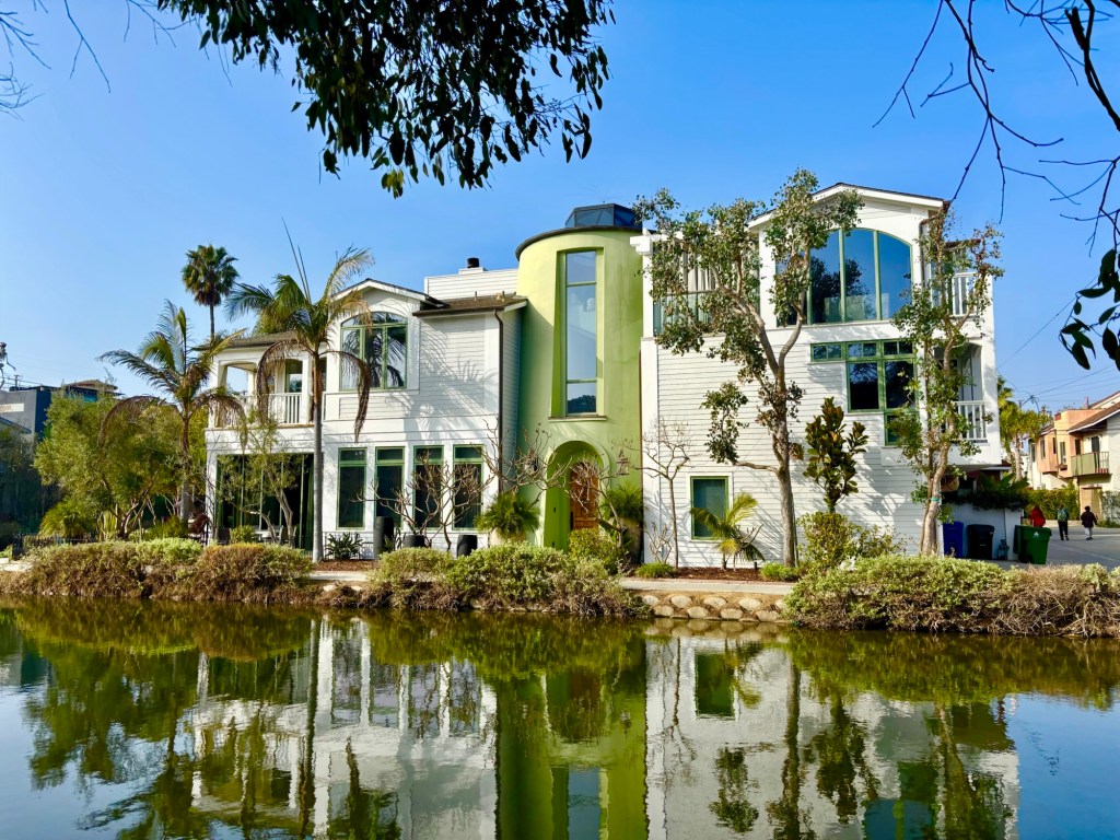 Yet, part of Abbot’s community survived and thrived. Hidden behind the bustle of Venice Beach, the expensive and exclusive canals community (reminiscent of Seattle’s Houseboat community in terms of unique, and high cost of homes) remains. Today it is a neighborhood of eclectic homes—some modern with sleek glass façades, others impossibly large for such a confined space, and yet others displaying the quirky charm of the unique people who call this place home.