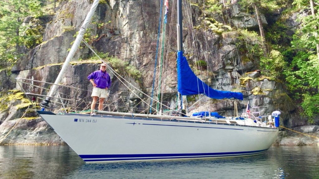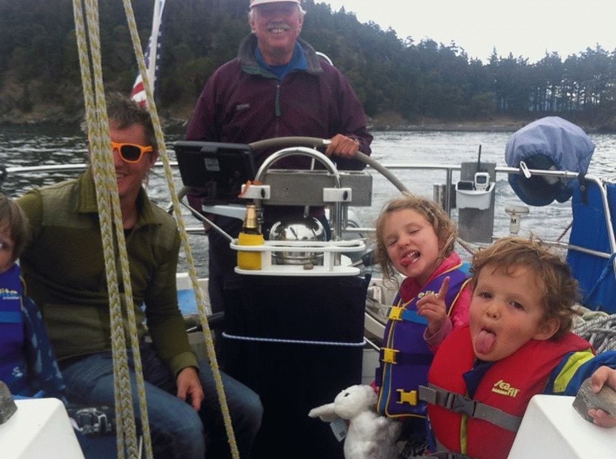 Last week, my father (known as Bumpa to his grandkids) passed away, his time cut short by ‘the ravages of maturity,’ as he put it. Even in his final days, he couldn’t bear to stay away from the sea. On his last day, he asked to visit Pangaea, which was on the hard, getting a new propeller. Seeing her out of the water, exposed and vulnerable, must have taken him back to 1978—the year she first entered our lives–as he followed behind as she was trucked down the highway on her way to be delivered. We knew his time was near, and in those final hours, we told him we would sail Pangaea in his honor in the Foul Weather Race hosted by the Anacortes Yacht Club, a race renowned for its challenging conditions. Ever the sailor, his first question? ‘What’s the forecast?’ It called for high winds and heavy rain—perfect conditions for Pangaea to show her true prowess. He passed away that evening.