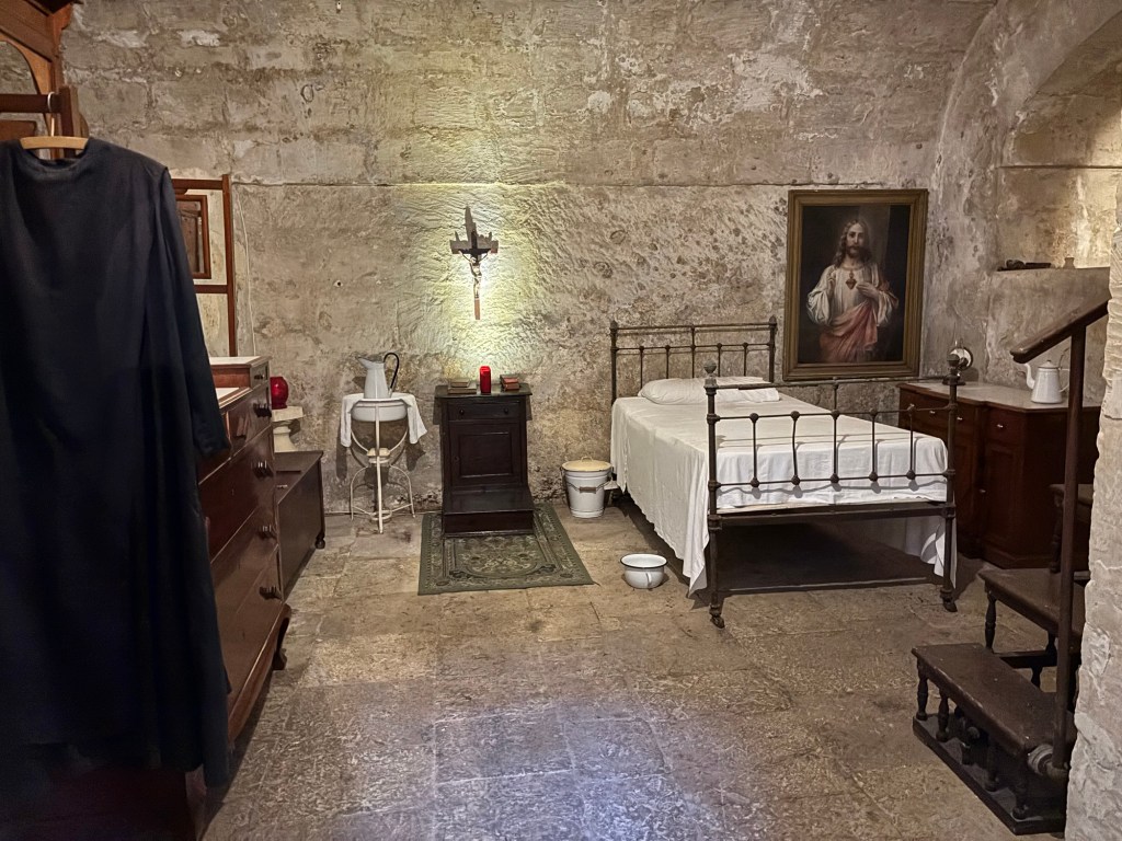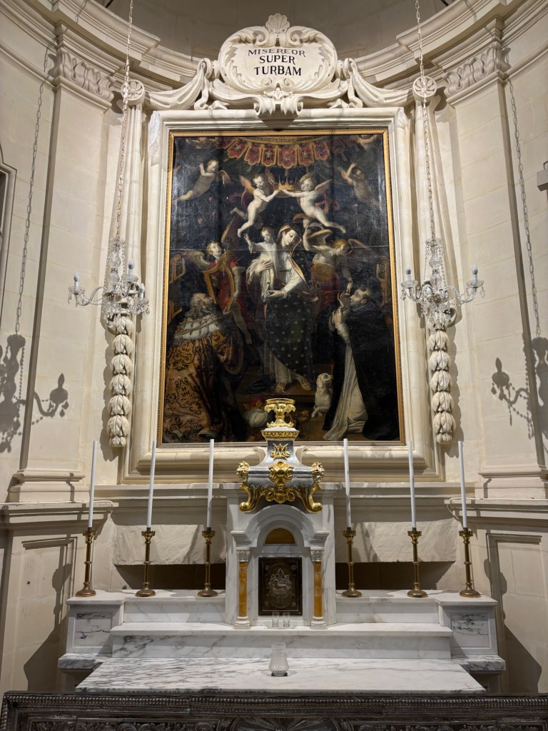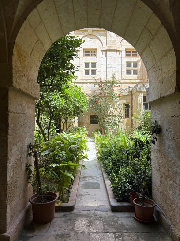 With our hunger sated and our thirst quenched, we continued our exploration of Valletta, eager to uncover the city’s hidden corners. Our next stop was the Mysterium Fidei Monastery. Stepping inside, we found a dimly lit interior that felt somber and austere, save for the unexpectedly bright green and alive central courtyard. The atmosphere carried a weighty sense of melancholy history, as we learned that many of the nuns who once lived within these walls were forced into the convent under duress or dubious circumstances. It was a sobering reminder of the monastery’s complicated past, tucked away behind its unremarkable and demure façade.