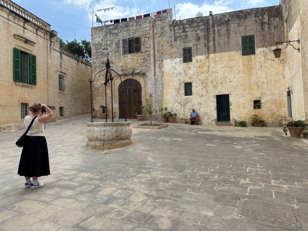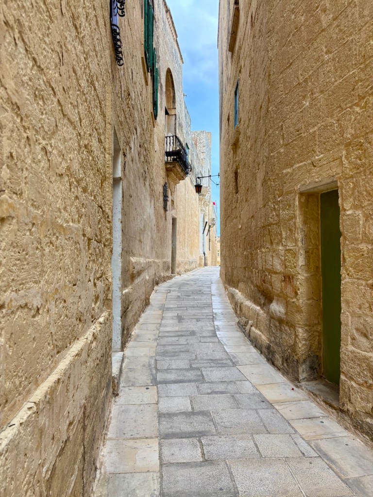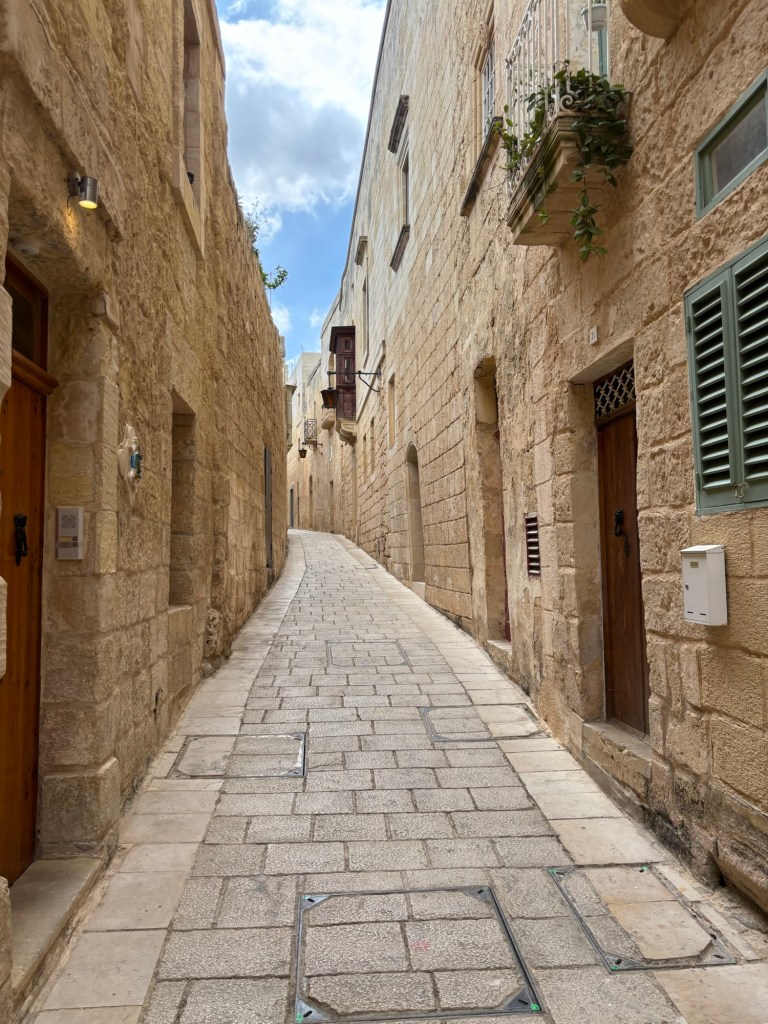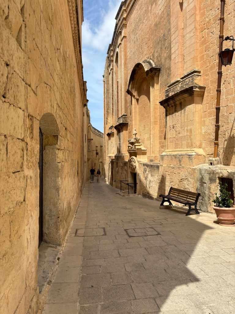 Mdina, greeted us with a warm morning glow at Mdina Gate. This gate, famously featured in Game of Thrones (Season 1, Episode 3), is where Catelyn Stark entered King’s Landing, and like her, we followed in her footsteps through the archway. Mdina is known as the Silent City because most cars are not allowed, and many of its winding alleyways are too narrow for even the smallest European vehicle. The tranquility and timelessness give it the feel of a film set, even though around 250 people live here full-time. It was amazing to walk these streets with only a few out tourists there this morning.