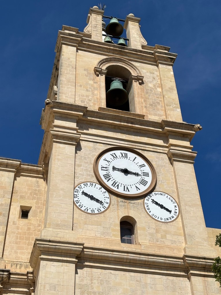 After lunch, we took Clara and Ian on a tour around Valletta, revisiting some of the places we had previously explored. This time, we stopped by a famous clock that, according to local lore, is the reason Maltese time is famously said to be five minutes slower than the rest of the world.