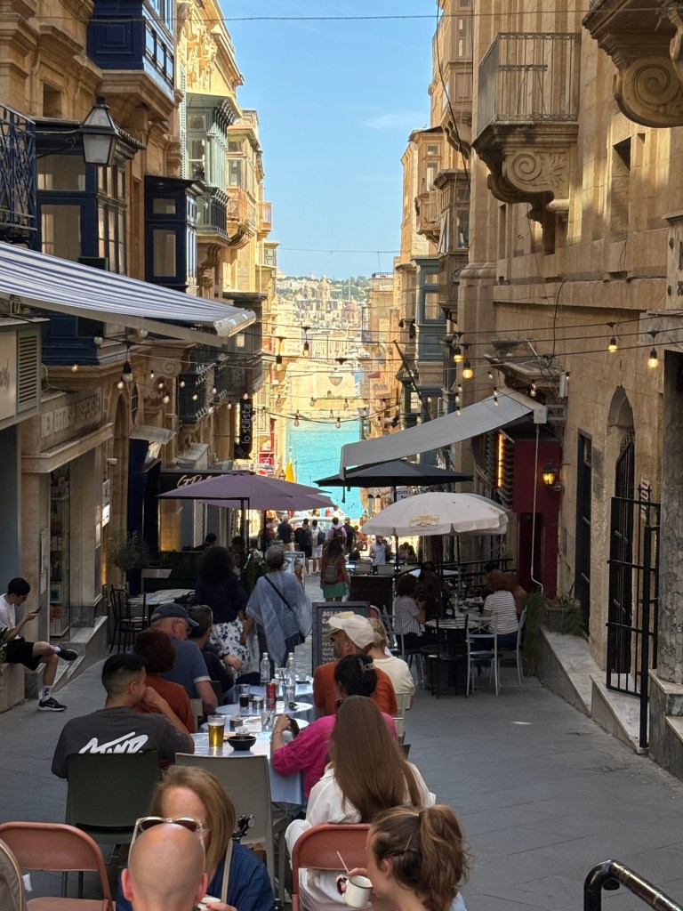 All those tombs left us feeling peckish, so we hopped into a Bolt and made our way to Valletta. It didn’t take long to score an excellent outdoor people-watching spot at 67 Kapitali. We settled in with a proper Maltese craft beer, a crisp Maltese cider, and a giant build-your-own charcuterie platter that we eagerly shared. The streets buzzed with the lively energy of tourists and locals alike, soaking up the sunny late spring day in this captivating city.