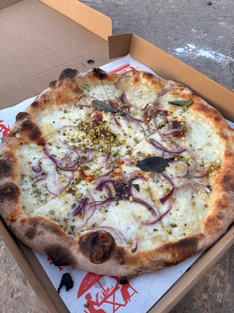 We were hungry again but didn’t have a reservation, so we walked across the city toward the water to Sally Port Pizzeria, a favorite spot of Nicky and Hass for Sicilian pizza. Unfortunately, we couldn’t get in. Instead of giving up, we did something even better: we ordered three pizzas to go and stopped by the corner market to pick up some beers and ciders.