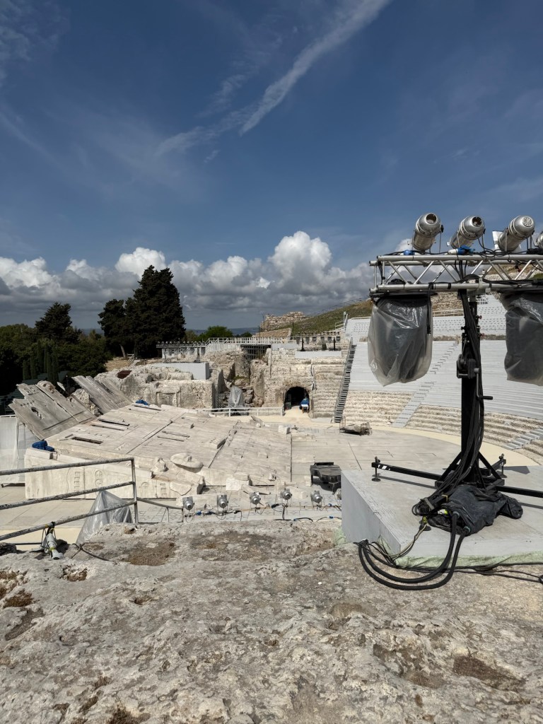 The limestone seating, much of it covered for the theater season by wooden platforms to protect the original stones, seemed to carry whispers of past performances on the wind. Our guide painted vivid images of the ancient audience (mostly men of import), explaining how the theater served not just as a place of entertainment but as an educational space. Tragedies were crafted to convey moral and philosophical lessons, inviting contemplation and reflection. This thoughtful purpose contrasted sharply with the Roman theater’s focus on “Bread and Circuses,” which aimed to distract rather than enlighten. The Greek Theater of Syracuse remains a place for cultural reflection.