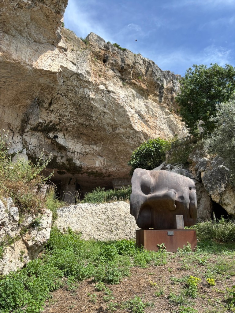 One of the most striking features on display here is the collection of contemporary bronze sculptures by Polish (near Krakow) artist Igor Mitoraj, whose artwork is showcased at the site until October 2025. His sculptures, depicting fragmented mythological human forms inspired by Greek stories, are thoughtfully and contemplatively placed throughout the quarry and in Ortigia. The juxtaposition between this ancient site and Mitoraj’s modern artistic interpretations of mythology creates a powerful and compelling and dichotomy about how history repeats itself in art and in action.