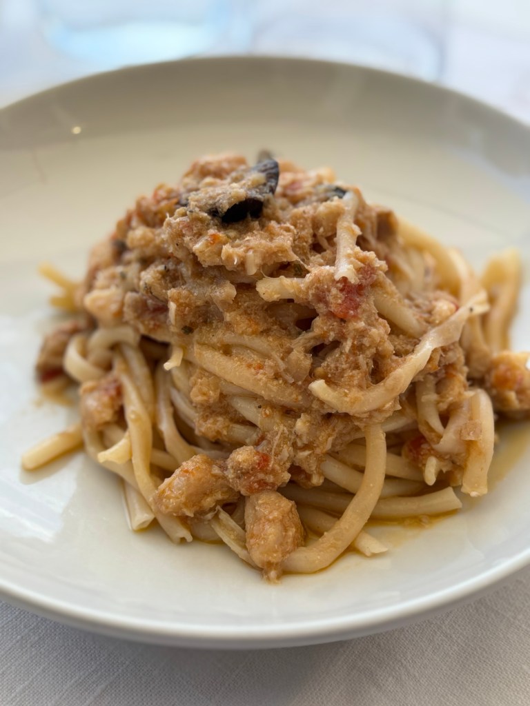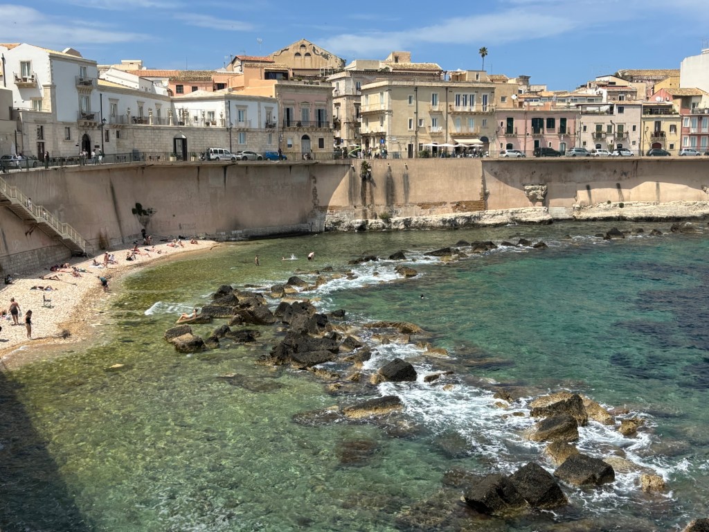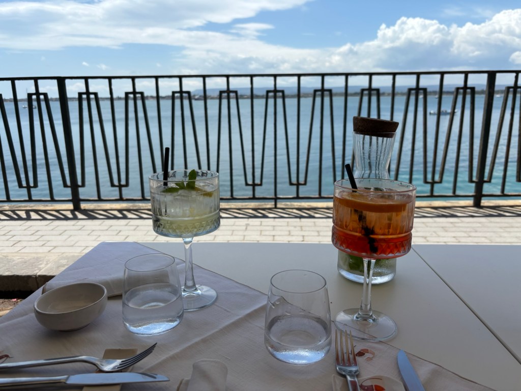 The tour concluded with a leisurely stroll through Ortigia’s picturesque squares, where modern cafes sit alongside centuries-old palazzi. We then wandered around town on our own, taking in the sights and following our guide’s lunch recommendation. We enjoyed a meal with a spectacular view of the water at Sorelle a Mare.