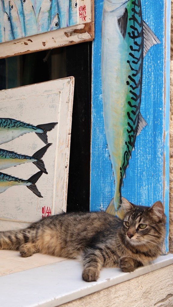 We wandered into a small fish shop, where a few cats lounged inside, seemingly surprised to find that the fish were actually beautifully painted ceramics. We picked out several to take home for ourselves and friends. We bought so many that the shop owners invited us back for a free drink later that night.