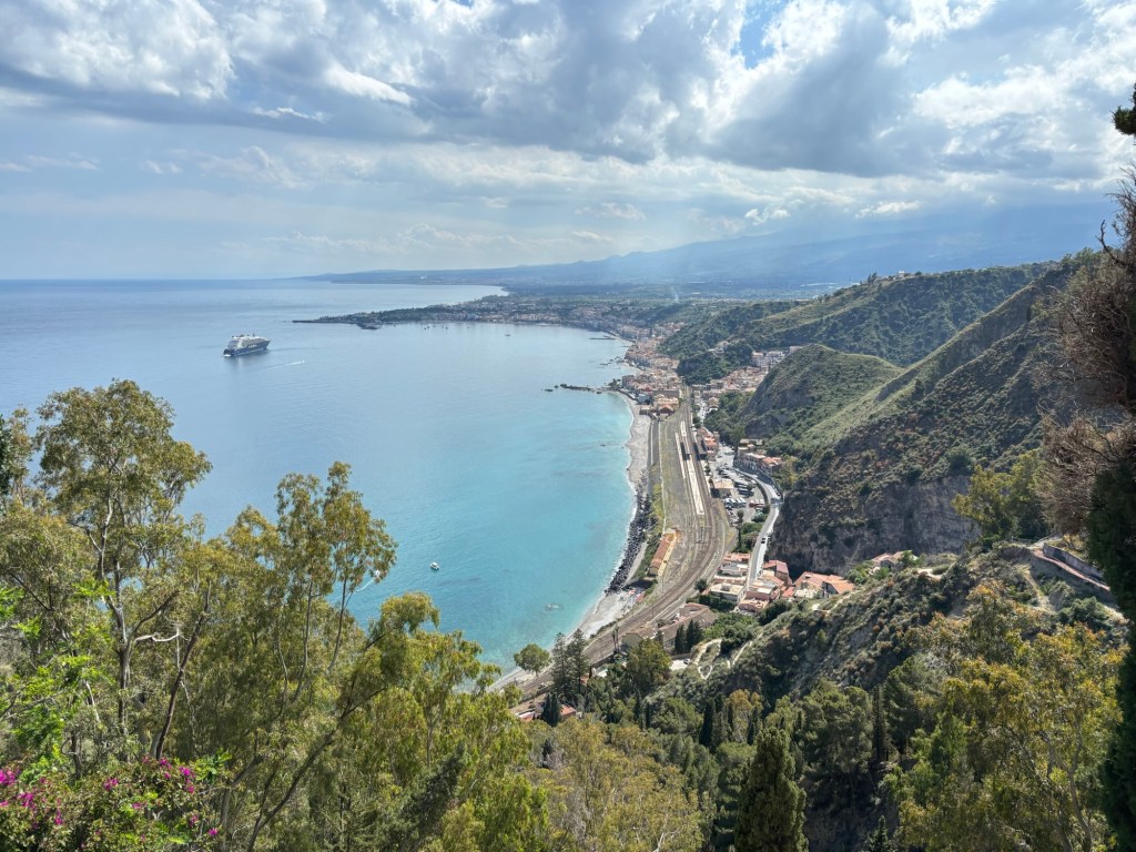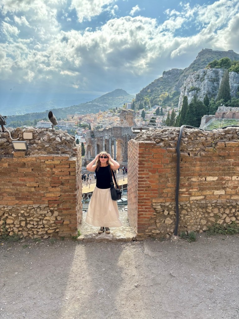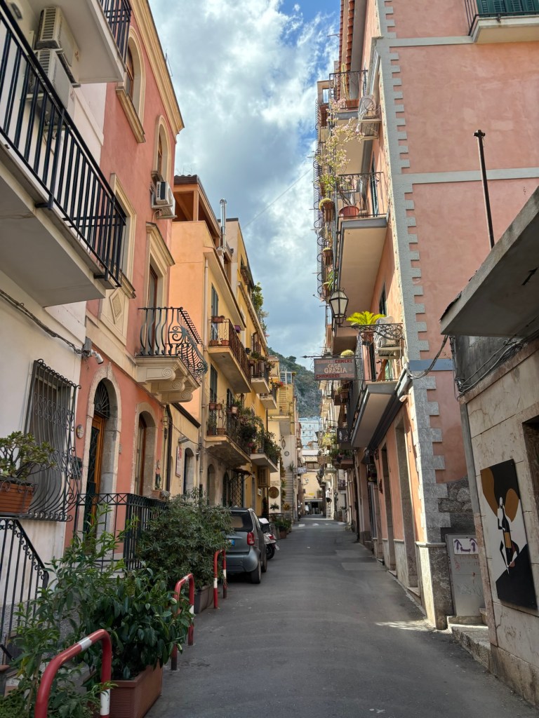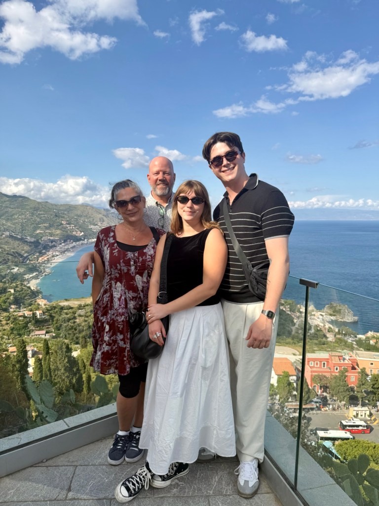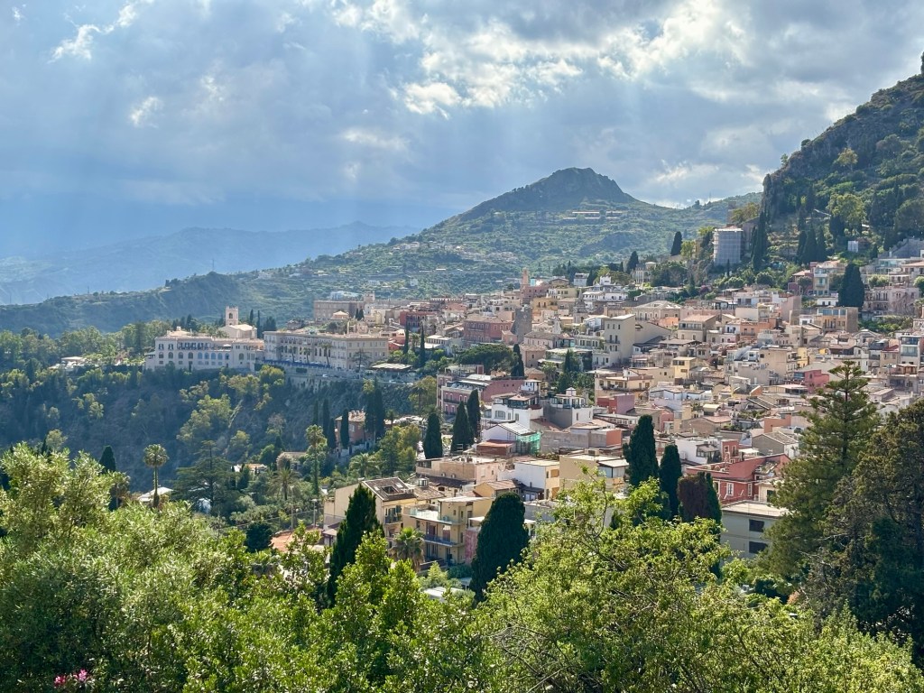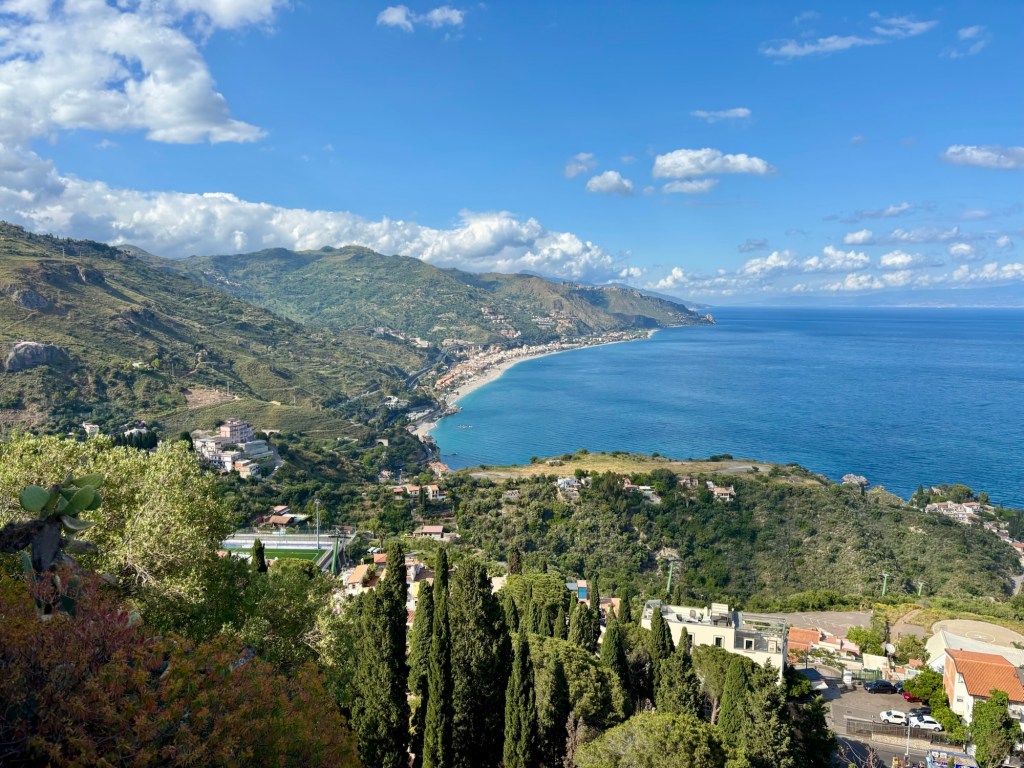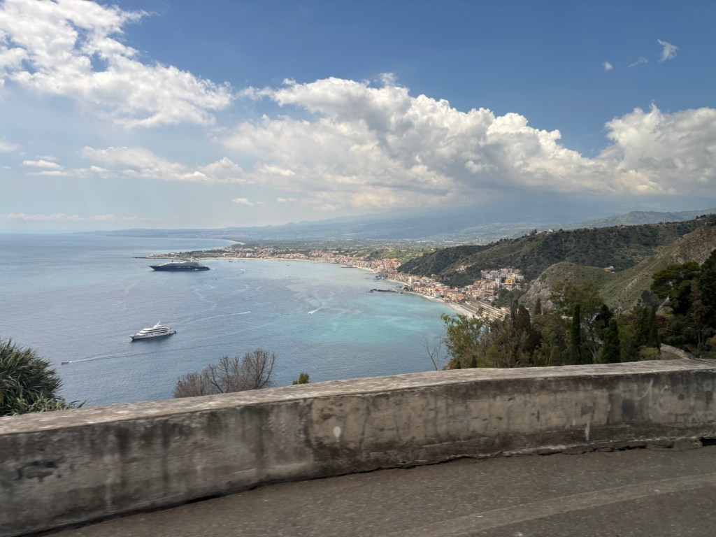 This morning, we were picked up in Ortigia by our driver for a scenic 1.5-hour drive to Taormina, a hilltop town perched high above the azure blue Ionian Sea. Taormina was famously featured as the breathtaking backdrop of Sicilian intrigue for Season 2 of The White Lotus! We are big fans of the show, and while we didn’t specifically choose Taormina because of The White Lotus (just as we didn’t choose Ireland, Iceland, Malta, or Croatia solely because of Game of Thrones), it definitely added a fun dimension to our vacation.