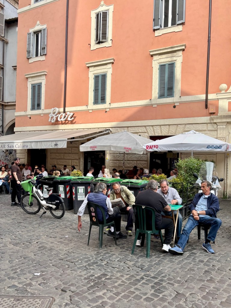 Sated and enchanted by the evening, the flavors, and the magic of Rome, we caught a ride back to our hotel. So much food! We were all happy to be back in Rome again (it was Ian’s first time). The city felt both familiar and new, and inviting. Tomorrow, more adventures await, but tonight, we fell asleep with full bellies, a soothing Italian wine buzz, and the lingering tastes of our new favorite Roman neighborhood, Trastevere.