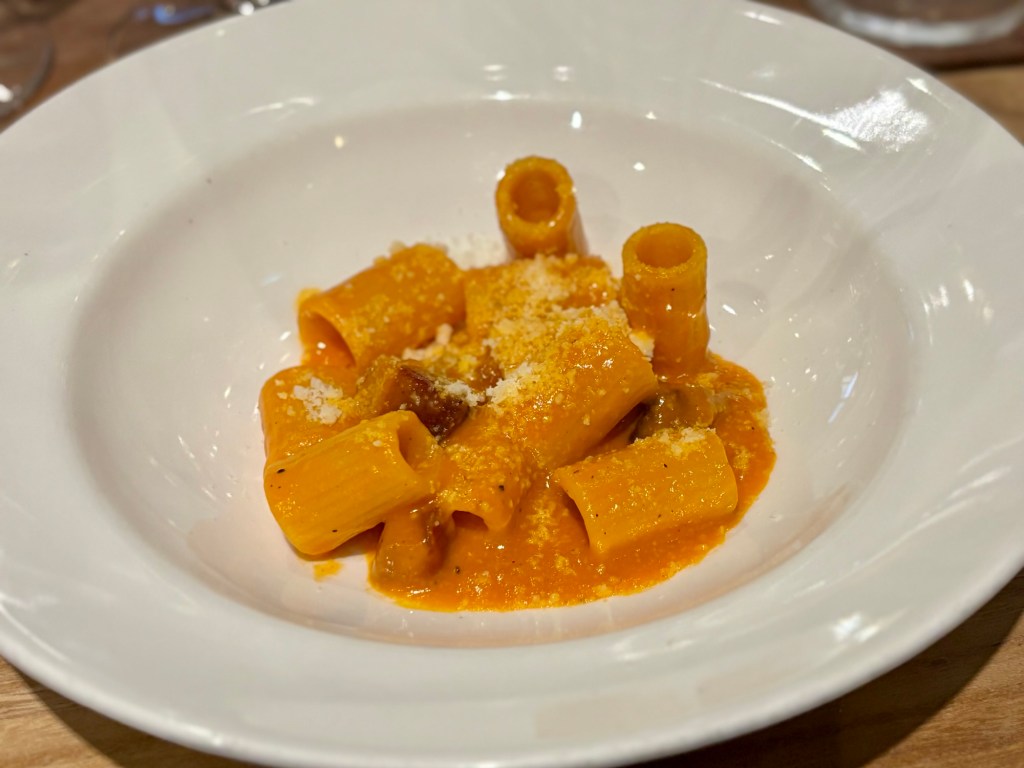 Eventually, we arrived at Roscioli Rimessa, the final stop and culinary crescendo of our walk through the streets of Trastevere. Roscioli delivered an exceptional eight-course tasting menu, with each plate paired with a thoughtfully selected Italian wine and accompanied by a detailed explanation of both the dish and the pairing. The dishes were inventive and every bit as delicious as the wines.