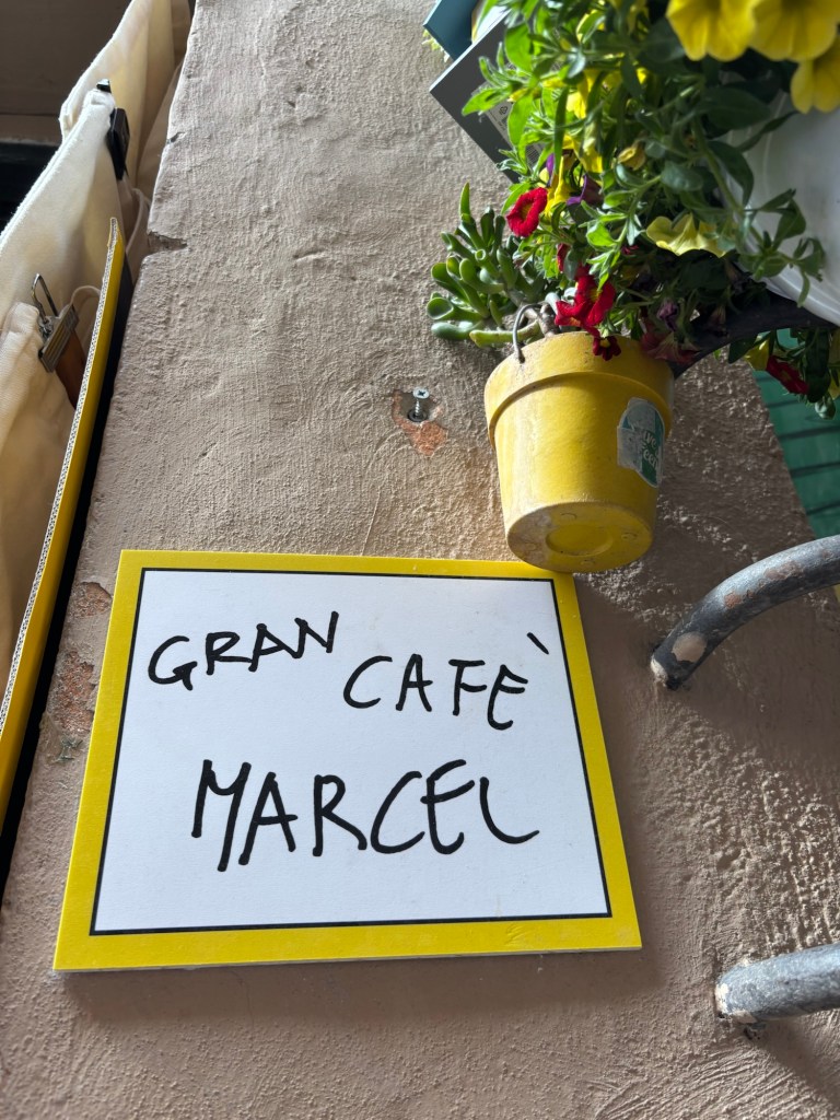 Fueled by carbs and curiosity, we popped into Radiation Records where we snagged a dozen Italian ‘45s from the ‘70s for our jukebox back home. Gelato followed at the same spot as before, Otaleg. Then we took a leisurely sun-dappled stroll from Trastevere to Piazza Navona. On the way we stumbled upon Gran Café Marcel (recently anointed by a TikTok influencer, a line out the door now to meet Marcel and his quaint paintings of cats and Roman alleyways and piazzas). We visited another Santa Maria Novella and after further sniffing Clara chose her fragrance. We stopped at every church we passed to check out the interior along the way to Piazza Navona and saw Bernini’s Fountain of the Four Rivers and Neptune’s Fountain.