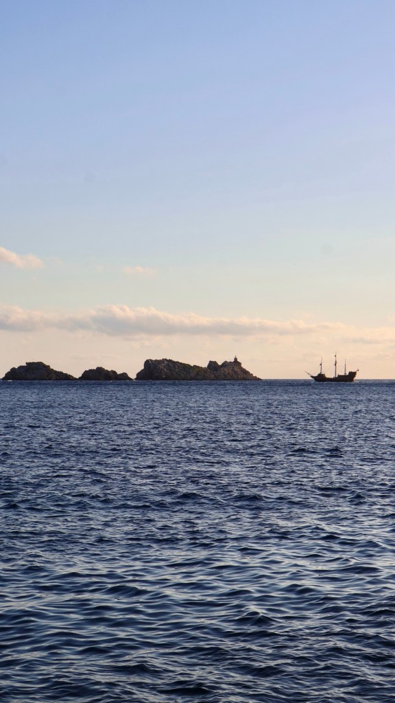 We capped the evening with a stop at a local shop for snacks and a bottle of Croatian wine. Back at our hotel, we took our glasses out to the veranda and watched replica boats drift across the sea on their sunset tours while the Adriatic shimmered with the last light of the day.