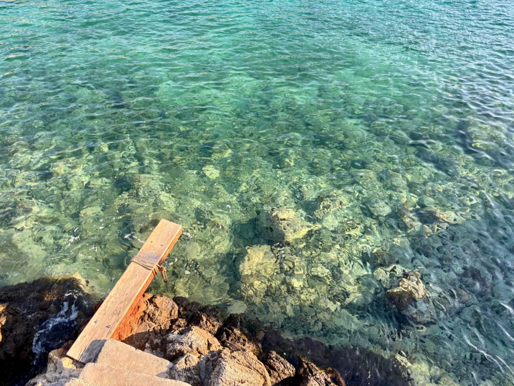 We debated wandering around the Old Town but instead strolled to a nearby village, down steep steps to the clear turquoise waters of the Adriatic, past swim ladders and swimming holes, and discovered the outdoor waterfront patio of Cave Bar More, carved into the cliffside. We sat outside with the sea just below us, waves licking the rocks as we sipped Aperol spritzes and, our new discovery, Hugo spritzes. The food was unfussy and perfect: an outstanding veggie sandwich, fries that deserved international recognition with their unique shape that seems to be popular in Croatia, and a burger that hit the spot. Apparently, burgers are very popular in Croatia. Who knew?