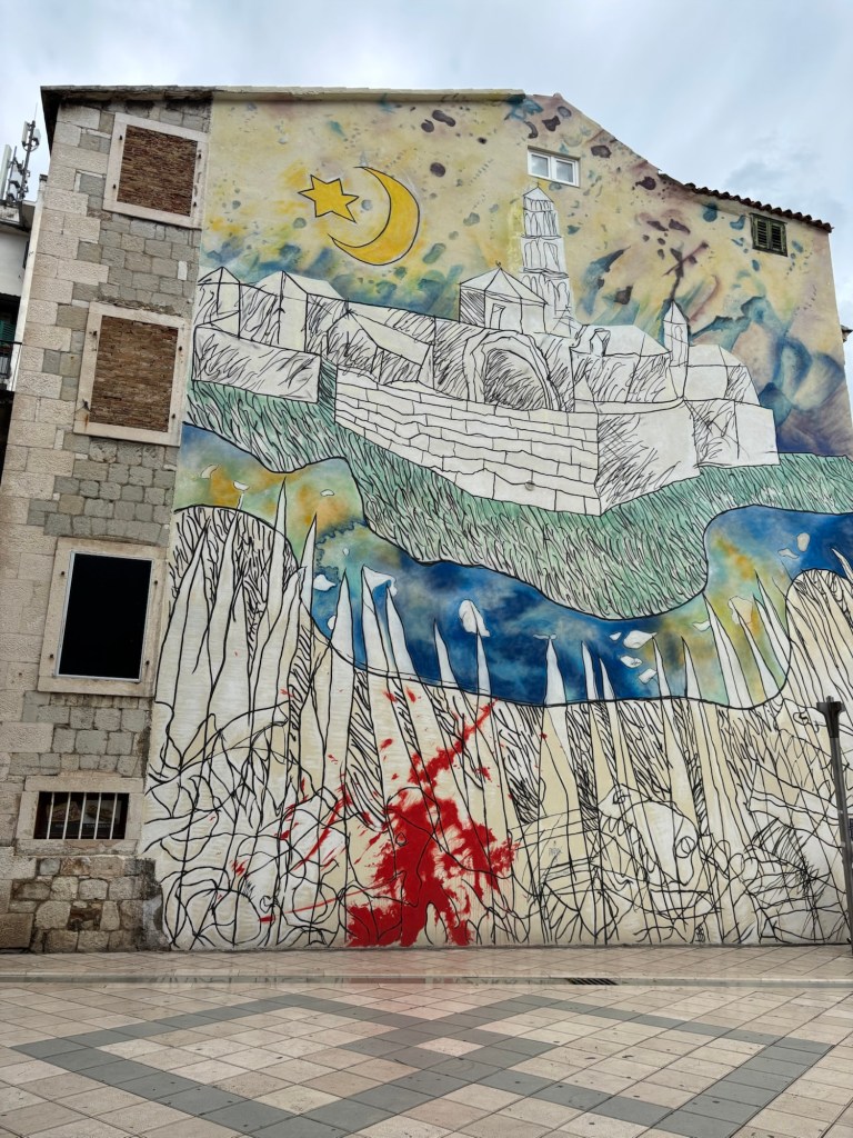 When we docked in Split, the skies fully opened and poured down upon us. Thunder cracked, lightning flashed, and the rain fell in such volumes it felt biblical. Old Testament biblical. We spotted our car and ran for it, instantly soaked. A very soggy driver, holding a dripping sign with our smeared name, met us at the port and navigated us through a city caught in a deluge, with flooded roads, stalled cars, and chaos sloshing at every curb and intersection.
