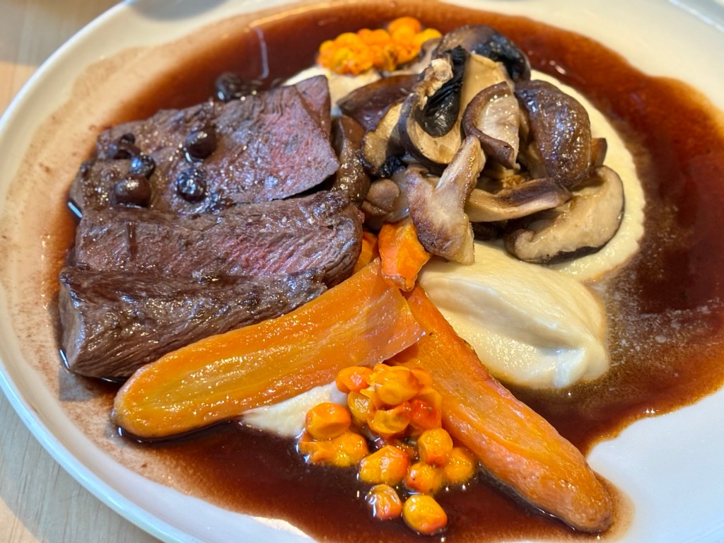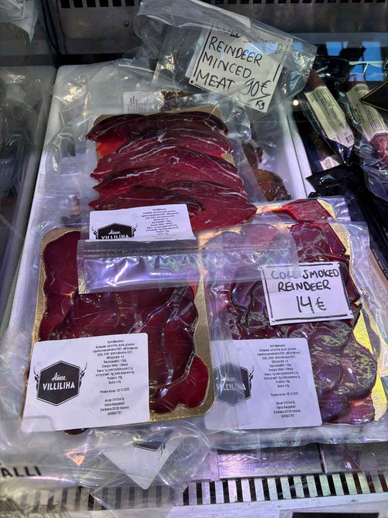 We started with lohikeitto, the famous salmon soup in dill cream, a dish that felt like it had been passed down through generations of Finnish mummus. But it was the reindeer we came for. It was rich, tender, and perfectly prepared. We had tried venison in Malta at The Golden Fork in Rabat, and it had made us wonder what reindeer might taste like in Finland. This dish was so good that even St. Nicholas, who apparently resides in Lapland, would have approved.