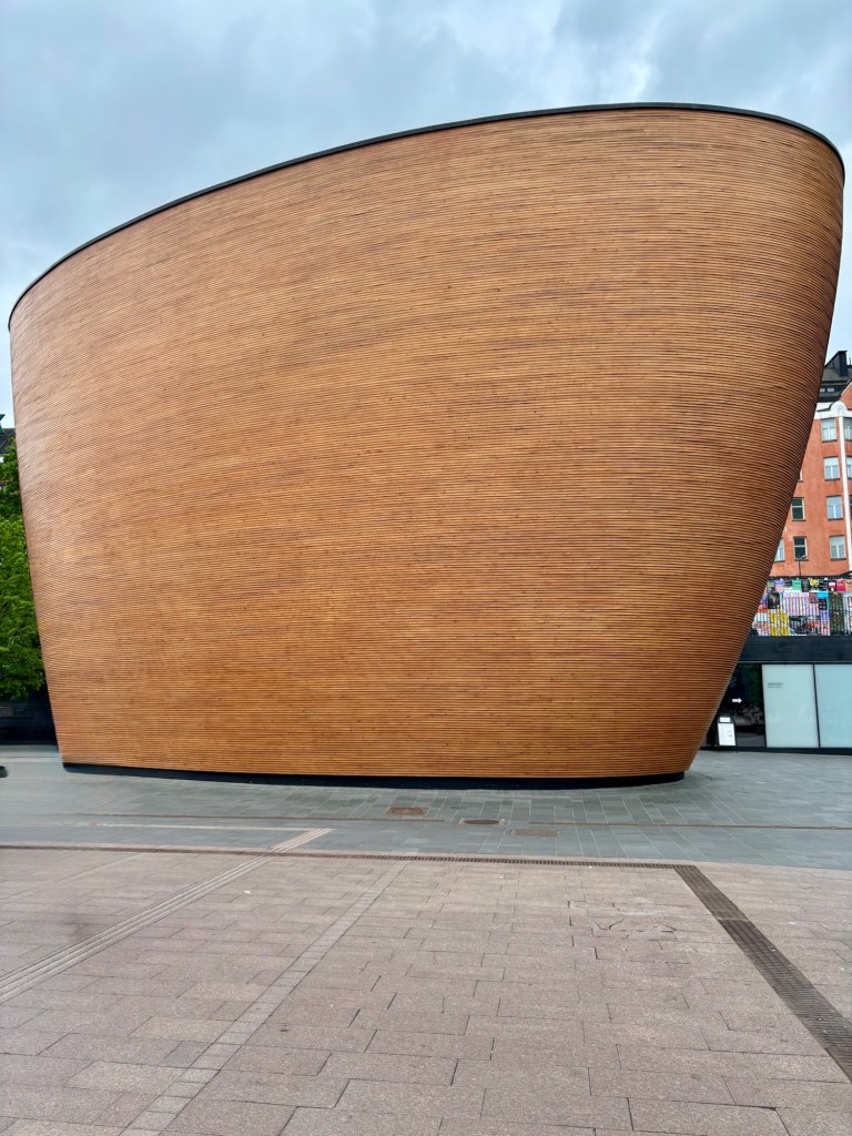 Our final spiritual stop was Kamppi Chapel, also known as the Chapel of Silence. Constructed from warm, curved wood to absorb the noise of the city surrounding it, it was completed in 2012. This nondenominational space was designed as a refuge from the rush of daily life, and it offered us a profound stillness. There was no stained glass, no ornate artwork, and, unfortunately, no cameras allowed inside. It was just silence in the heart of Helsinki.