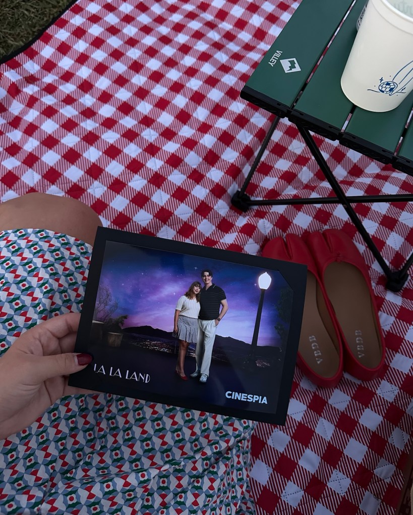 Hollywood Forever feels like the most Los Angeles of places. I wrote about it last year in a post called Lights, Camera, Eternity…. After waiting in line for an hour (tip: arrive early) and quickly wandering among the graves of the famous to vie for a spot, we spread our blanket and settled in. Cinespia, who organizes and hosts these screenings, has turned them into interactive experiences. A pop-up photobooth, styled as an iconic twilight scene from the film, invites you to step in as Mia and Seb and snap a selfie.