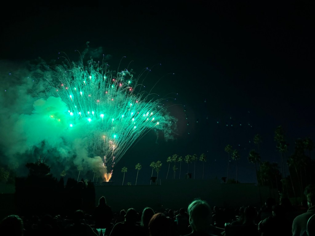 When the film ended and the words ‘The End’ appeared on the screen, everybody’s eyes were misty from the final montage of what Mia and Seb’s life might have been. There was a collective cheer. And then, fireworks. Explosions of color erupted above the mausoleum and palms, echoing off the tombs, monuments, and marble walls. It was beautiful. The tears were replaced by oohs, aahs, and applause.