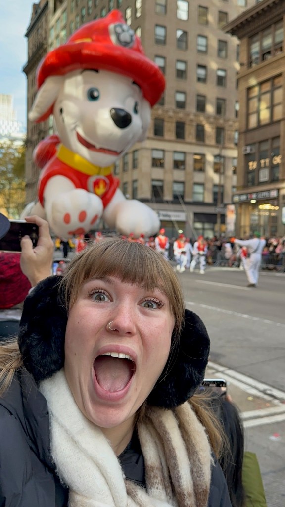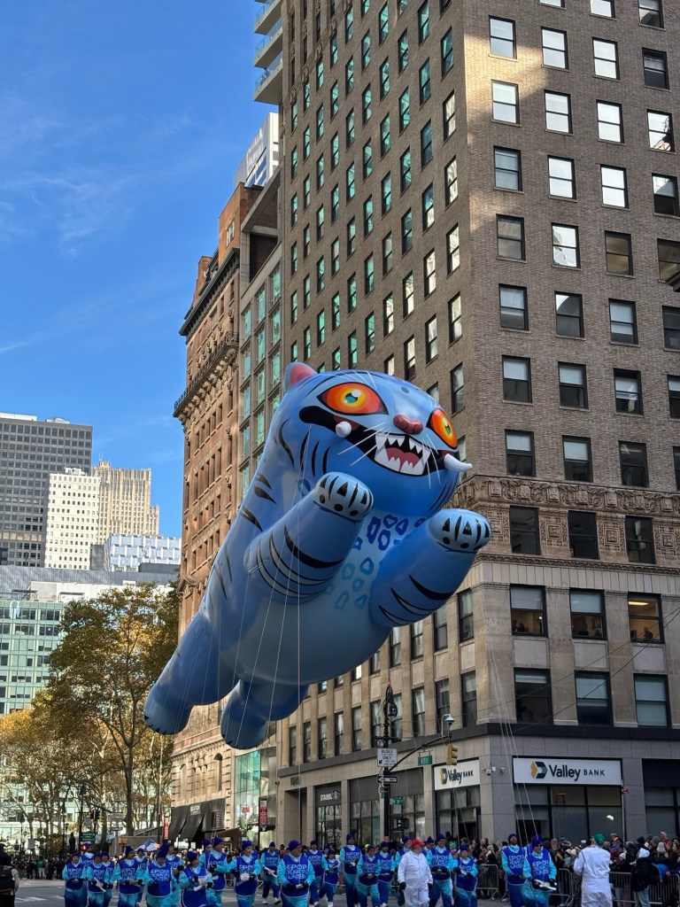 What can I say. The parade and the entire morning were pure magic. The sun rose over the avenue, the skies opened into a clear blue, and although the air stayed cold it climbed into the reasonable forties, just like home. Everyone around us seemed genuinely happy and cheered for every performer who passed. The floats rolled by and the balloons drifted along low flight paths because of the wind, while Clara quietly hoped for a minor balloon mishap to add drama to the day. The marching bands thundered past and, punctuating it all, were the B list celebrities adorning many of the floats, including Ciara, Busta Rhymes, Lil Jon, Teyana Taylor, Foreigner, Lainey Wilson, Meg Donnelly, Voices from the KPop Demon Hunters, Debbie Gibson, Shaggy, and Kool and the Gang among others.