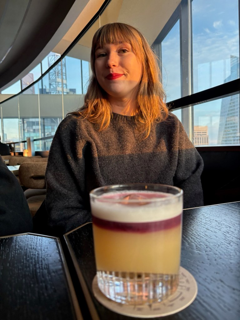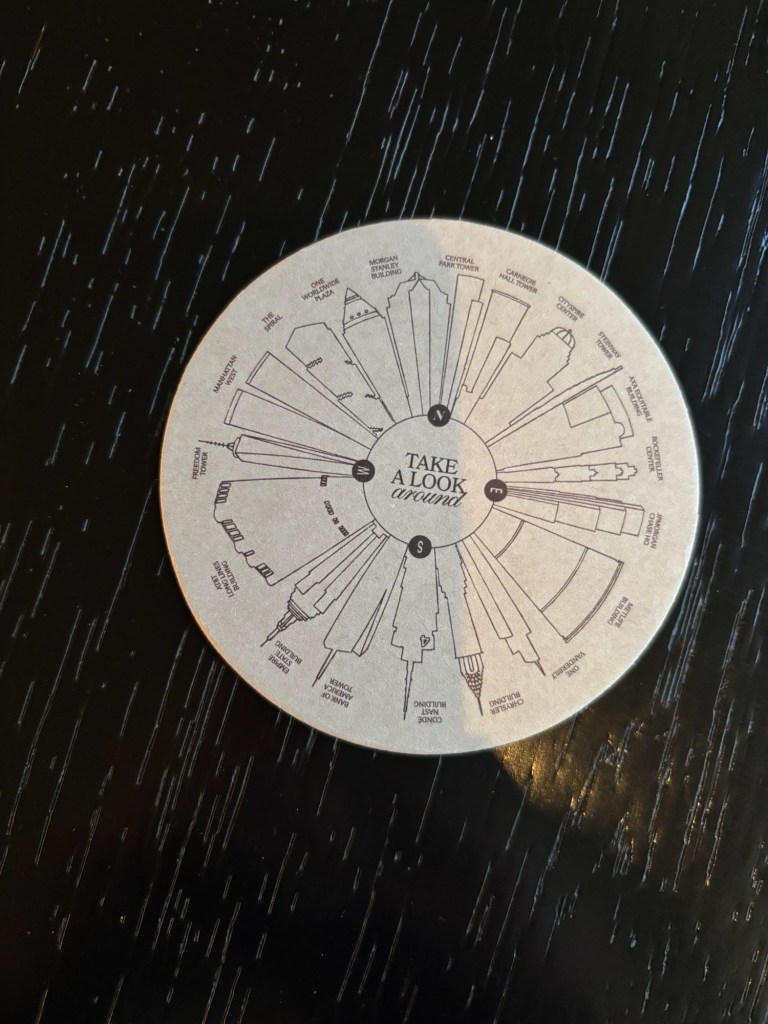 With a little time to spare before our reservation at Isabelle’s Osteria we rode up to The View, the bar atop the Marriott Marquis. The moment we stepped inside we understood the name. Floor to ceiling windows revealed New York City glowing in the light of a Thanksgiving Day sunset and the slow, steady rotation of the bar (a surprise to us!) offered a full panorama of the skyline (as did the coasters!) . We ordered bespoke cocktails, sipped them slowly, and watched the city turn beneath.