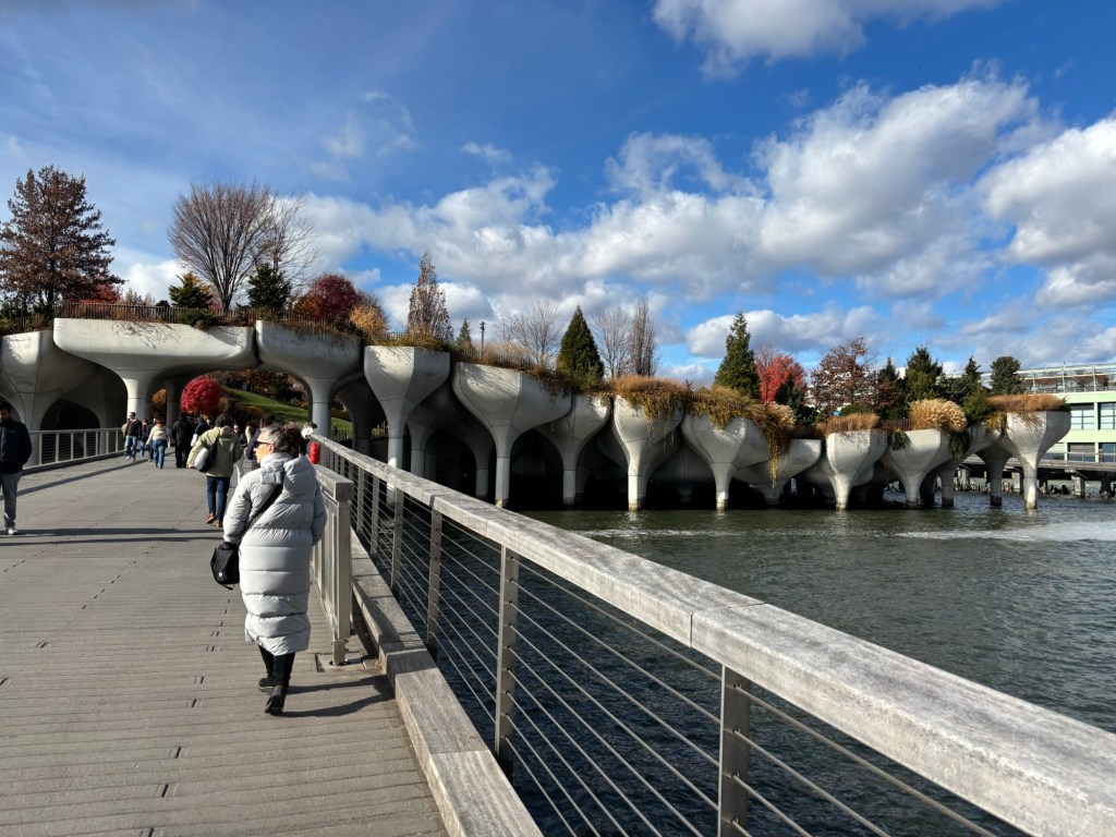The wind was bracing and cold. Little Island is a visually stunning pocket of green perched over the Hudson in Chelsea, just steps from the Whitney and the High Line. We wandered without a plan. It was cold and windy, but the sun was out and offered just enough late fall warmth to make the chill forgivable. From there, we drifted along the High Line and into Chelsea Market. That was a mistake. If you dislike crowds, Black Friday at Chelsea Market is not the place to be. We entered at one end and spent our time jockeying to exit the other.