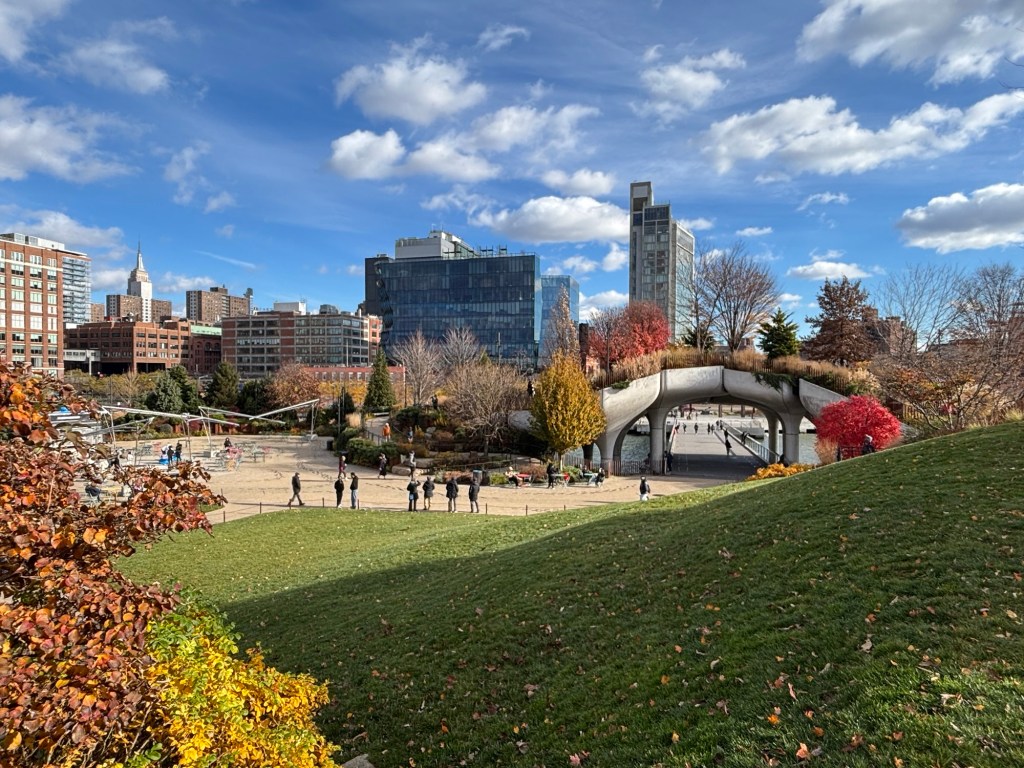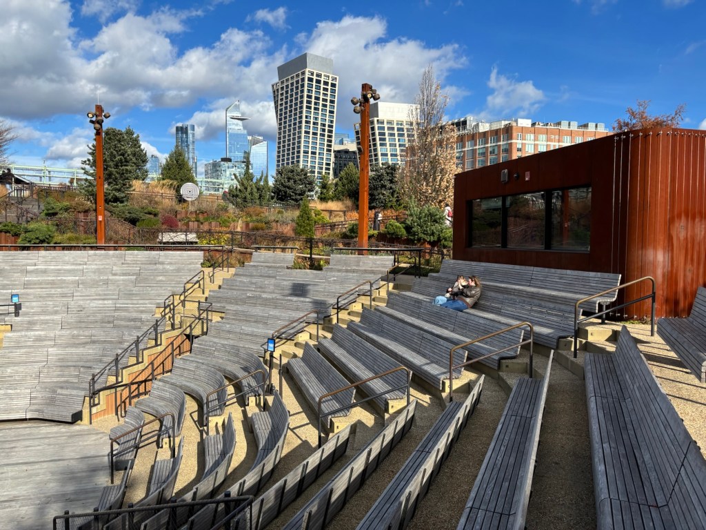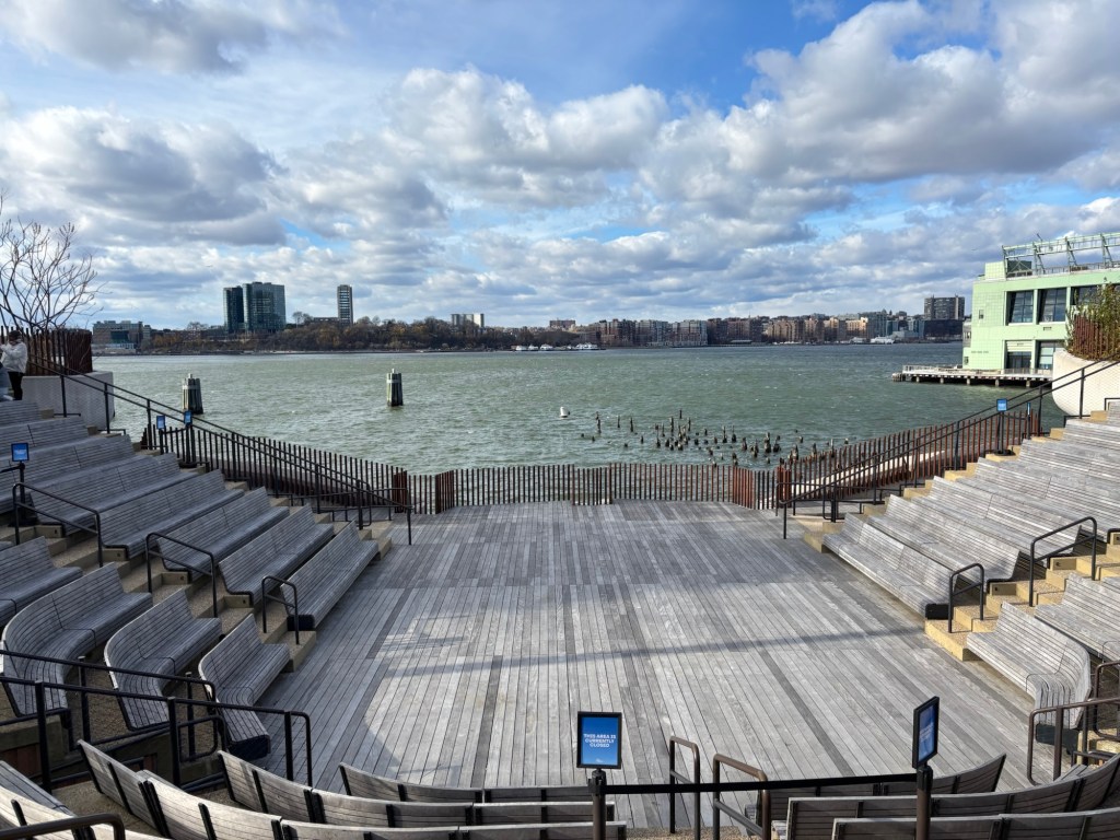 We walked it off with a slow lap around Washington Square Park, a place that still carries memories for me from when I used to ride the train down from Bard College on weekends to stay with friends attending NYU. From there, we caught a cab to Little Island, a place we had stumbled upon by accident on our last trip to New York and immediately grew fond of. Clara and Cal had wandered there after breakfast and met us huddled in the amphitheater, taking in striking views of the Hudson, Chelsea Piers, and New Jersey across the water.